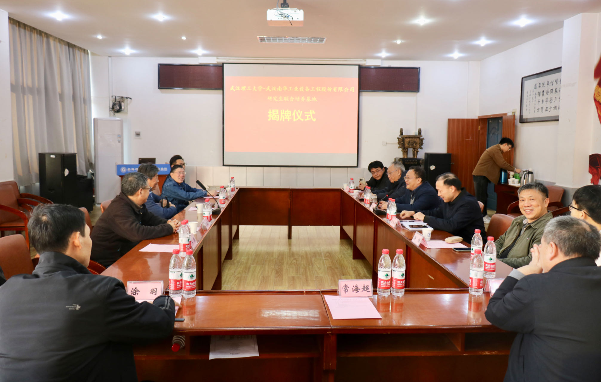 11月24日,“武汉理工大学-william威廉中文官网研究生联合培养基地”在武汉理工大学船海与能源动力工程学院举办了隆重的揭牌仪式。武汉理工大学船海与能源动力工程学院李晓彬院长、程细得副院长、陈顺怀教授、陈辉教授、李鹤鸣副教授、陈智君副教授等与william威廉中文官网工业苗凤林董事长、李志俊副总经理等出席揭牌仪式。