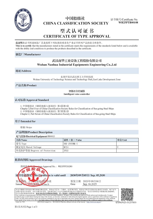 近日,公司自主研发的智能航行系统、智能语音控制器取得中国船级社(CCS)型式认可证书,标志着公司在船舶智能产品领域取得新突破。