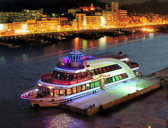 本船外采用高级LED亮化系统装饰,配有强光型LED软管灯带、LED护栏管灯带,使本船在夜晚显的格外亮丽,让其成为海岛休闲旅游观光、餐饮、商务为一体的首选。